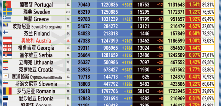 18.12.2021: COVID-19 新型冠状欧洲疫情表。