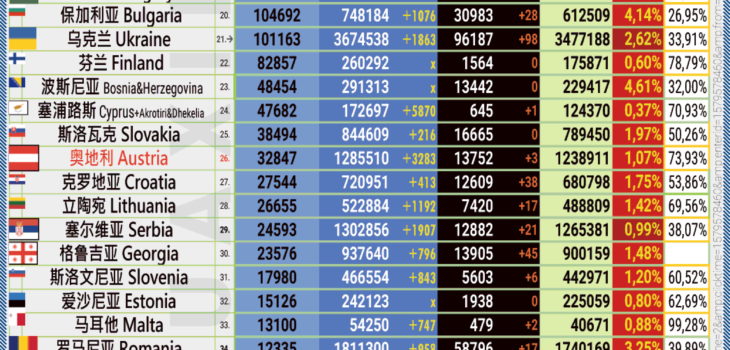 02.01.2022: COVID-19 新型冠状欧洲疫情表。