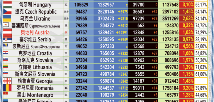 09.01.2022: COVID-19 新型冠状欧洲疫情表。