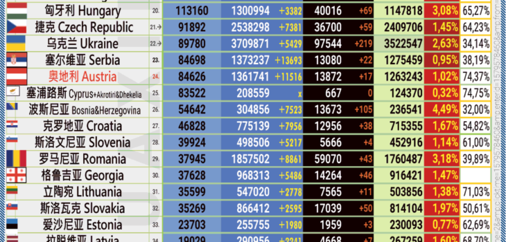 11.01.2022: COVID-19 新型冠状欧洲疫情表。