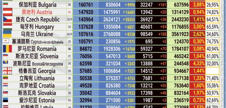 18.01.2022: COVID-19 新型冠状欧洲疫情表。