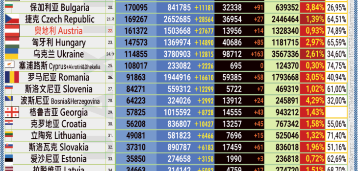 19.01.2022: COVID-19 新型冠状欧洲疫情表。