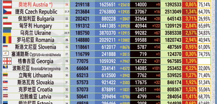 24.01.2022: COVID-19 新型冠状欧洲疫情表。