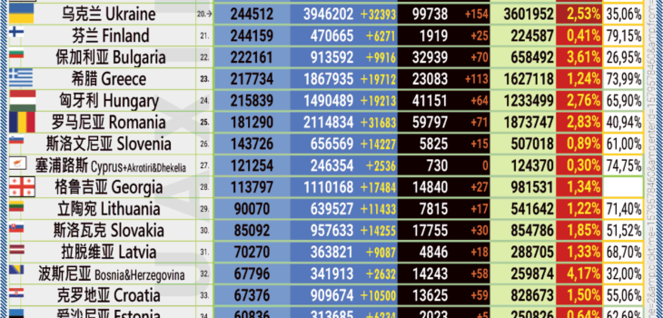 27.01.2022: COVID-19 新型冠状欧洲疫情表。