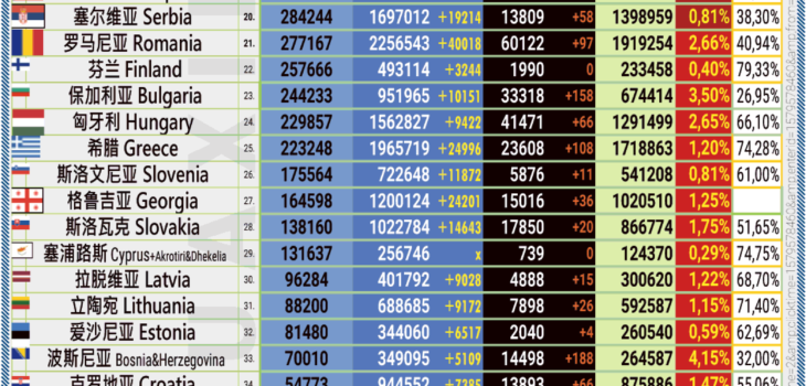 01.02.2022: COVID-19 新型冠状欧洲疫情表。