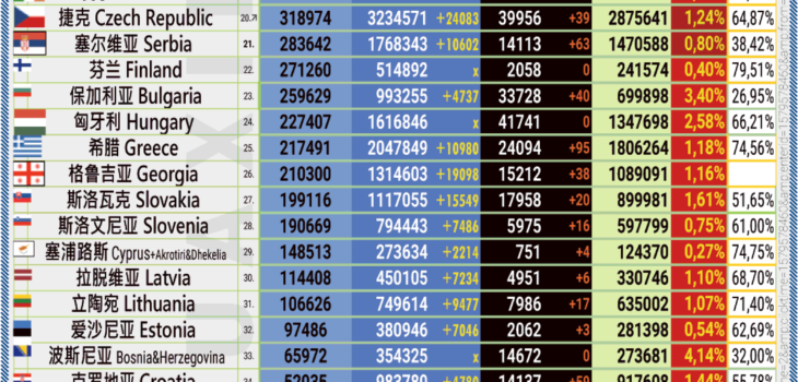 06.02.2022: COVID-19 新型冠状欧洲疫情表。
