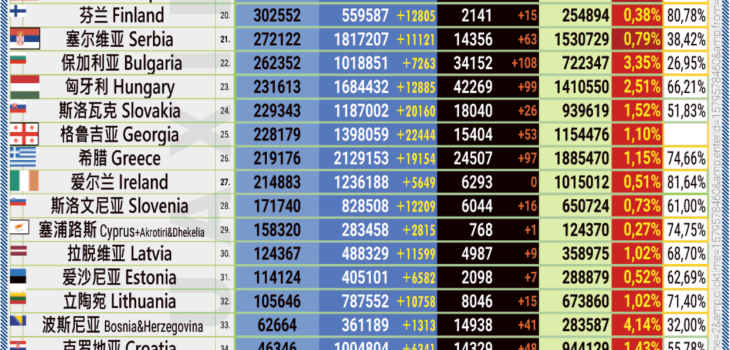 10.02.2022: COVID-19 新型冠状欧洲疫情表。