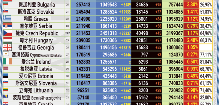 16.02.2022: COVID-19 新型冠状欧洲疫情表。