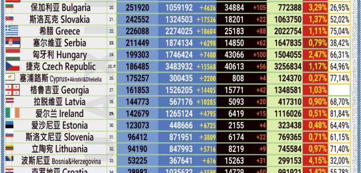 18.02.2022: COVID-19 新型冠状欧洲疫情表。