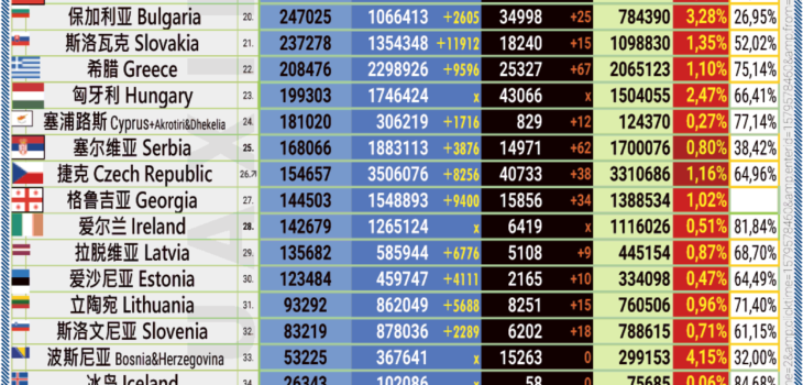 20.02.2022: COVID-19 新型冠状欧洲疫情表。