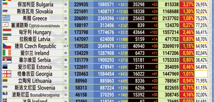 24.02.2022: COVID-19 新型冠状欧洲疫情表。