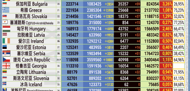 25.02.2022: COVID-19 新型冠状欧洲疫情表。