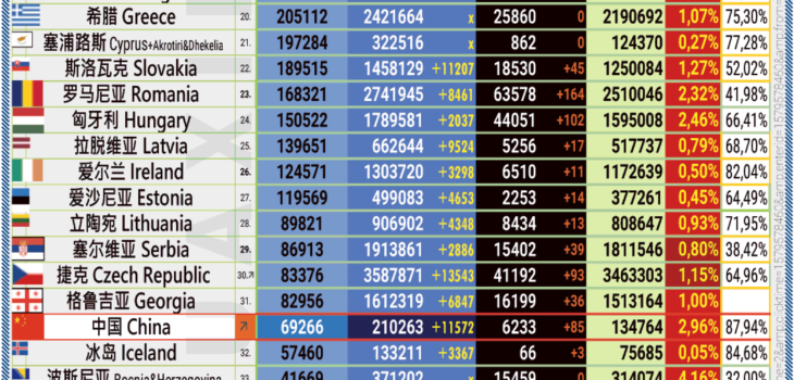 01.03.2022: COVID-19 新型冠状欧洲疫情表。