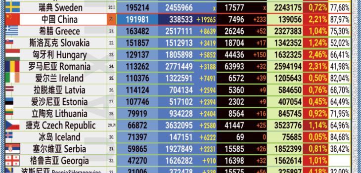 07.03.2022: COVID-19 新型冠状欧洲疫情表。