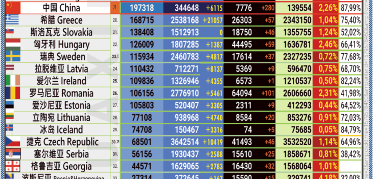 08.03.2022: COVID-19 新型冠状欧洲疫情表。