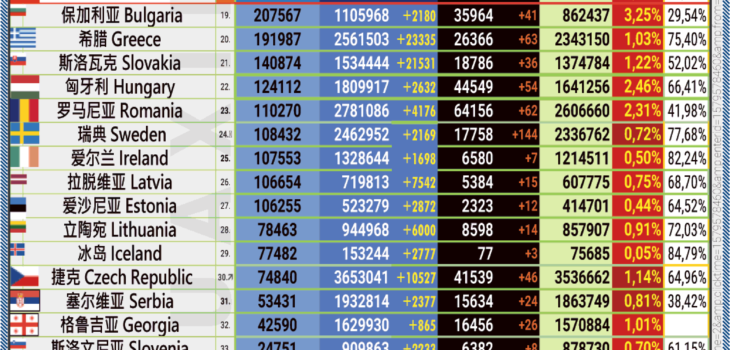 09.03.2022: COVID-19 新型冠状欧洲疫情表。