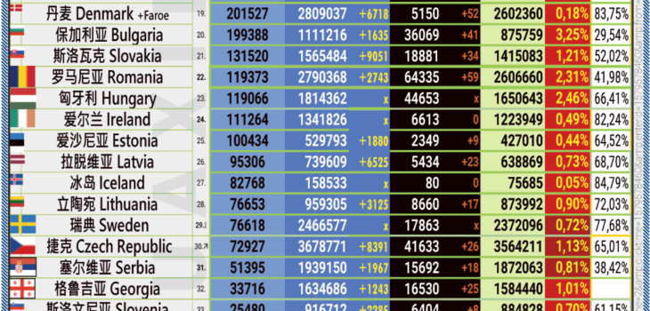 12.03.2022: COVID-19 新型冠状欧洲疫情表。
