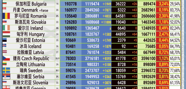 17.03.2022: COVID-19 新型冠状欧洲疫情表。