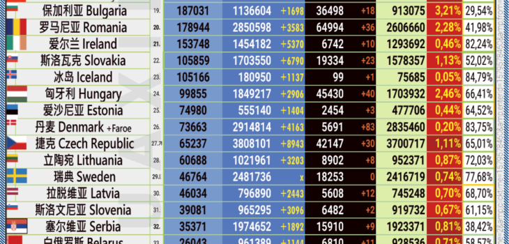 30.03.2022: COVID-19 新型冠状欧洲疫情表。