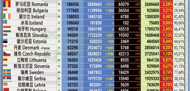 02.04.2022: COVID-19 新型冠状欧洲疫情表。