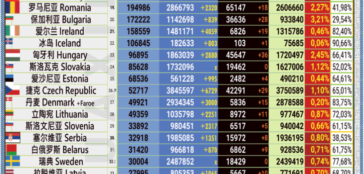 06.04.2022: COVID-19 新型冠状欧洲疫情表。
