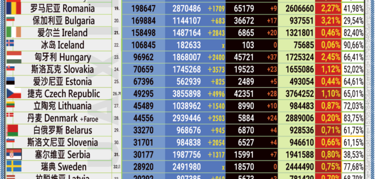 08.04.2022: COVID-19 新型冠状欧洲疫情表。