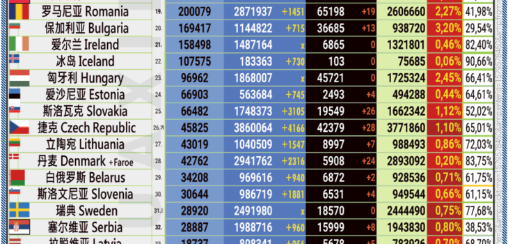 09.04.2022: COVID-19 新型冠状欧洲疫情表。