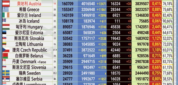 13.04.2022: COVID-19 新型冠状欧洲疫情表。