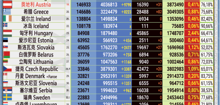 15.04.2022: COVID-19 新型冠状欧洲疫情表。