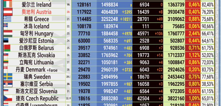 19.04.2022: COVID-19 新型冠状欧洲疫情表。