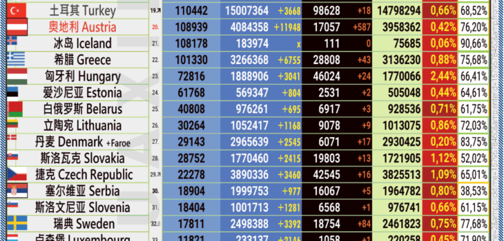 21.04.2022: COVID-19 新型冠状欧洲疫情表。