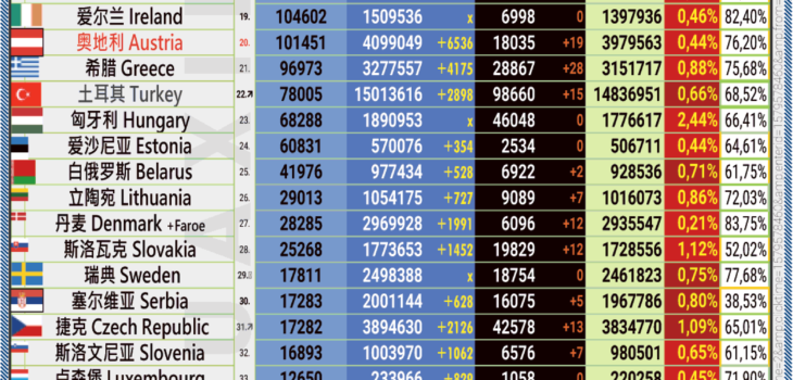 23.04.2022: COVID-19 新型冠状欧洲疫情表。