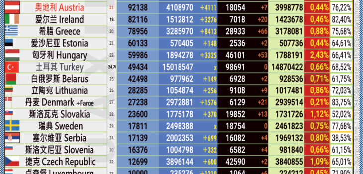 25.04.2022: COVID-19 新型冠状欧洲疫情表。
