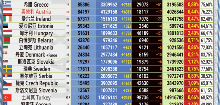 28.04.2022: COVID-19 新型冠状欧洲疫情表。