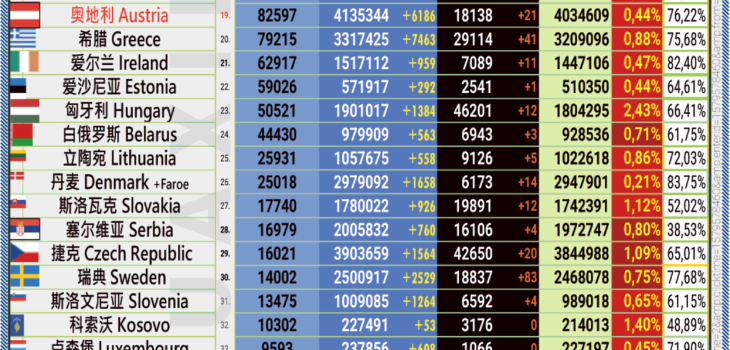 29.04.2022: COVID-19 新型冠状欧洲疫情表。
