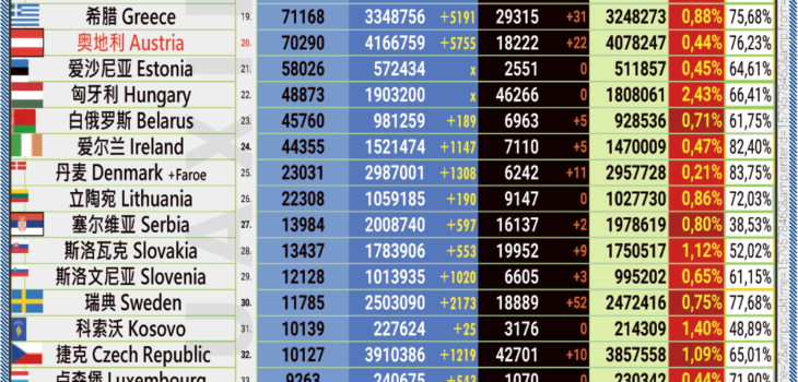 Uncategorised 05.05.2022: COVID-19 新型冠状欧洲疫情表。 6th May 20226th May 2022 by Huaxin Admin 40 SHARES 在脸书分享 • Share on Facebook 推特 • Tweet 电子邮件关注 • Follow us Please leave this field empty .: 在这里您可以订阅我们的电子邮件通知。当我们网站上发表新文章时,您将收到一封电子邮件。:. | | .: Here you can subscripe to our email notifications. When a new article is published on our website, you will receive an email. :. .: 订阅是免费的。 所有数据将按照DSGVO进行保存。:. | :: The subscription is free of charge. All data will be saved compliant to DSGVO. :: 电子邮件 | Email Address * We don’t spam! Read our [link]privacy policy[/link] for more info. You’ve been successfully subscribed to our newsletter! 04.05.2022: COVID-19 新型冠状欧洲疫情表。 06.05.2022: COVID-19 新型冠状欧洲疫情表。 Huaxin Admin 05.05.2022: COVID-19 新型冠状欧洲疫情表 Related articles 23.05.2023: COVID-19 新型冠状欧洲疫情表05.05.2023: COVID-19 新型冠状欧洲疫情表22.04.2023: COVID-19 新型冠状欧洲疫情表11.04.2023: COVID-19 新型冠状欧洲疫情表02.04.2023: COVID-19 新型冠状欧洲疫情表01.04.2023: COVID-19 新型冠状欧洲疫情表30.03.2023: COVID-19 新型冠状欧洲疫情表29.03.2023: COVID-19 新型冠状欧洲疫情表28.03.2023: COVID-19 新型冠状欧洲疫情表26.03.2023: COVID-19 新型冠状欧洲疫情表25.03.2023: COVID-19 新型冠状欧洲疫情表24.03.2023: COVID-19 新型冠状欧洲疫情表