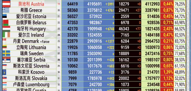 11.05.2022: COVID-19 新型冠状欧洲疫情表。