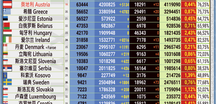 12.05.2022: COVID-19 新型冠状欧洲疫情表。