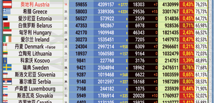 14.05.2022: COVID-19 新型冠状欧洲疫情表。