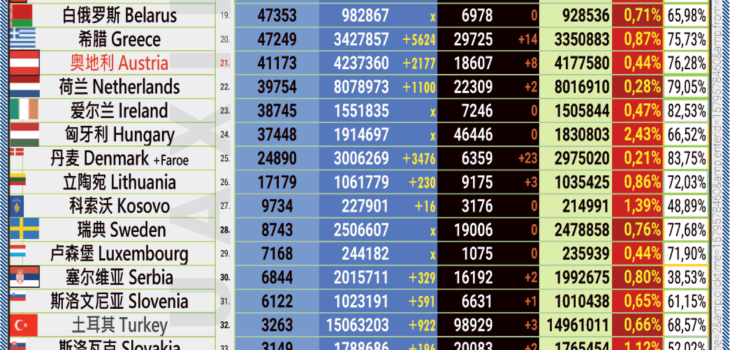 24.05.2022: COVID-19 新型冠状欧洲疫情表。