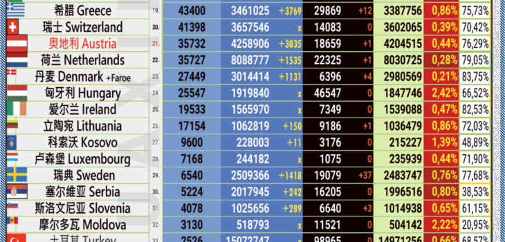 02.06.2022: COVID-19 新型冠状欧洲疫情表。