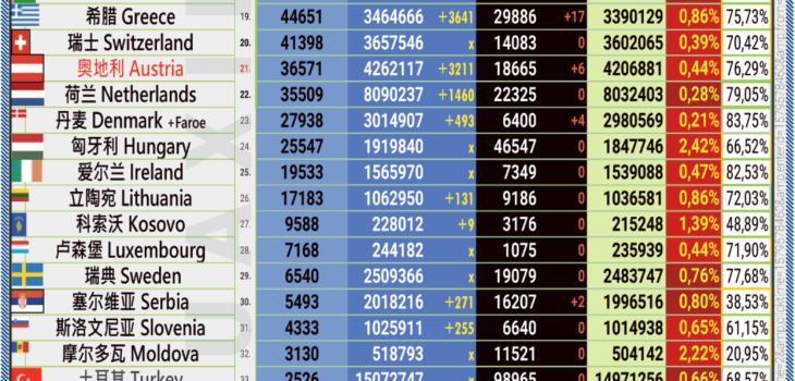 03.06.2022: COVID-19 新型冠状欧洲疫情表。