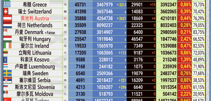 04.06.2022: COVID-19 新型冠状欧洲疫情表。