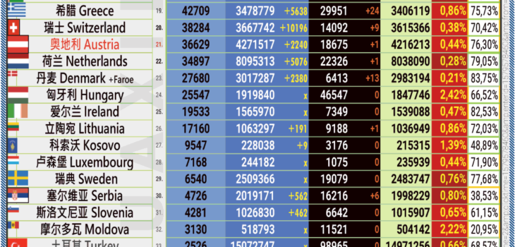 07.06.2022: COVID-19 新型冠状欧洲疫情表。