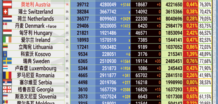 09.06.2022: COVID-19 新型冠状欧洲疫情表。
