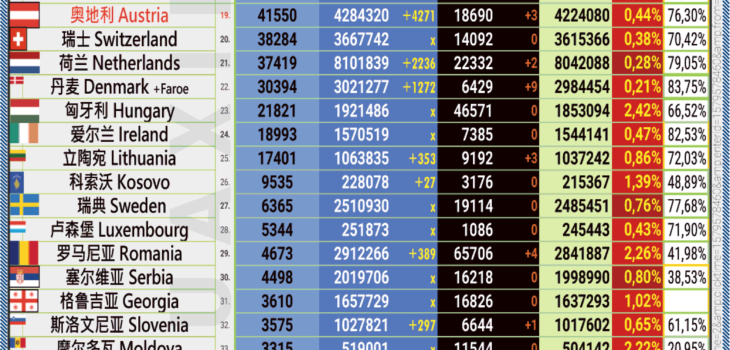 10.06.2022: COVID-19 新型冠状欧洲疫情表。