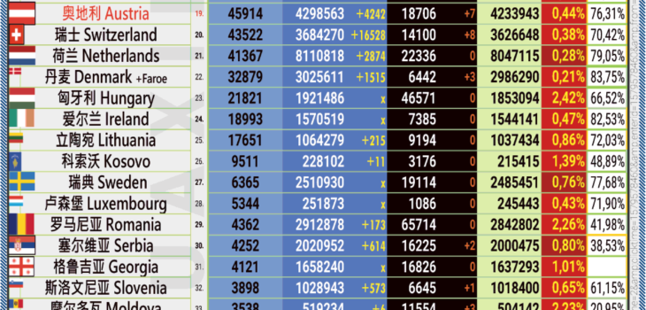 14.06.2022: COVID-19 新型冠状欧洲疫情表。