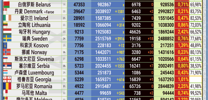 23.06.2022: COVID-19 新型冠状欧洲疫情表。