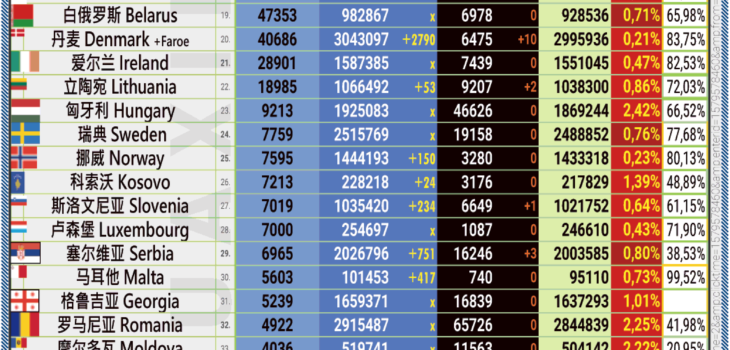 27.06.2022: COVID-19 新型冠状欧洲疫情表。
