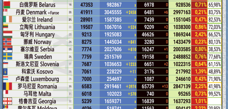 Uncategorised 28.06.2022: COVID-19 新型冠状欧洲疫情表。 28th June 202228th June 2022 by Huaxin Admin 7 40 SHARES 在脸书分享 • Share on Facebook 推特 • Tweet 电子邮件关注 • Follow us Please leave this field empty .: 在这里您可以订阅我们的电子邮件通知。当我们网站上发表新文章时,您将收到一封电子邮件。:. | | .: Here you can subscripe to our email notifications. When a new article is published on our website, you will receive an email. :. .: 订阅是免费的。 所有数据将按照DSGVO进行保存。:. | :: The subscription is free of charge. All data will be saved compliant to DSGVO. :: 电子邮件 | Email Address * We don’t spam! Read our [link]privacy policy[/link] for more info. You’ve been successfully subscribed to our newsletter! 27.06.2022: COVID-19 新型冠状欧洲疫情表。 29.06.2022: COVID-19 新型冠状欧洲疫情表。 Huaxin Admin 28.06.2022: COVID-19 新型冠状欧洲疫情表 Related articles 23.05.2023: COVID-19 新型冠状欧洲疫情表05.05.2023: COVID-19 新型冠状欧洲疫情表22.04.2023: COVID-19 新型冠状欧洲疫情表11.04.2023: COVID-19 新型冠状欧洲疫情表02.04.2023: COVID-19 新型冠状欧洲疫情表01.04.2023: COVID-19 新型冠状欧洲疫情表30.03.2023: COVID-19 新型冠状欧洲疫情表29.03.2023: COVID-19 新型冠状欧洲疫情表28.03.2023: COVID-19 新型冠状欧洲疫情表26.03.2023: COVID-19 新型冠状欧洲疫情表25.03.2023: COVID-19 新型冠状欧洲疫情表24.03.2023: COVID-19 新型冠状欧洲疫情表